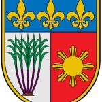 The shield is divided into two equal parts by a perpendicular line. The shield’s right is silver with a sugarcane plant (the industialization of which was introduced by Yves Leopold in Negros) with five stalks rising from its base and in natural colors. On its left is red, with the sun shining and having eight shorter and thinner rays in gold (refering to the Philippines). On the top is blue, with three fleur de lys (lily flowers, referring to Yves Leopold’s French origin).
